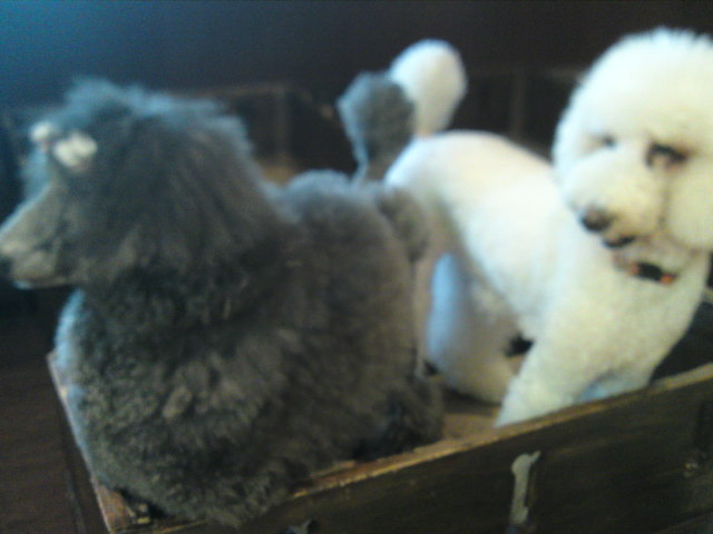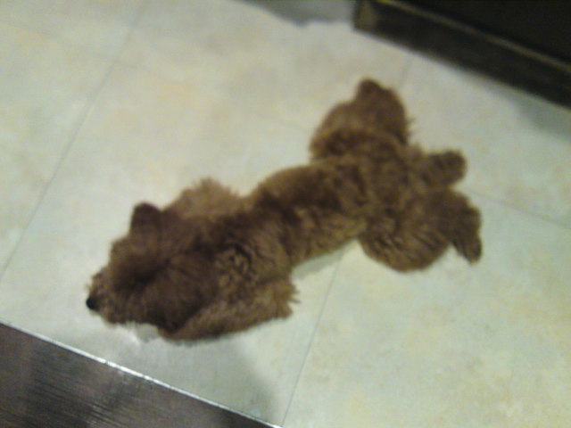 家に帰ったら、きーちゃんは何も気づいてませんでしたが、ぶーちゃんはなめられた服をくんくんしてました(^_^;)
