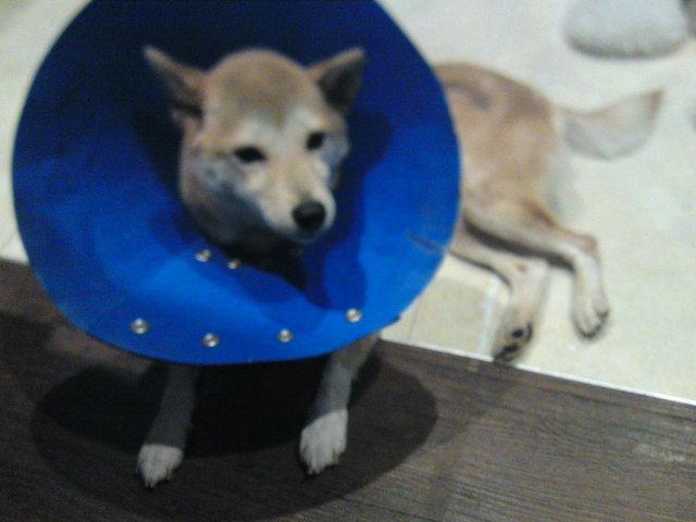 柴犬の小紅ちゃんは、猫アレルギーらしくてえりまきつけられてた(苦笑)